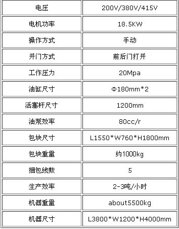 说明:立式轮胎打包机专门为废旧轮胎的打包而设计。对全世界来说,处理废旧轮胎一直是个难题,后来人们把废旧轮胎提炼后用作重油,修路用的立青等有利于环保的事上。这系列的机器的生产量高以及包块密度大,使用简单,易于维护。 优点 左右门固定,前后均只用一个门,门上均做有上下2排反弹爪,防止压板上升时轮胎反弹。 本机采用双压板结构,并各配有2支导杆,能够解决机仓内物料放置的左右不平衡。 采用液压开门,避免了开门时的反弹现象。 前后门上下各安装了一组手动板手,确保机器操作时的安全。 本机配有自动返包,压板上升时能自动将包块返出,节约打包时间。 液压站外置,维护方便。