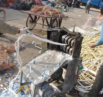 At the same time, can also use the tool cutting open rolling insulating layer does not require manual operation mode can make the line core and the insulating layer separation.